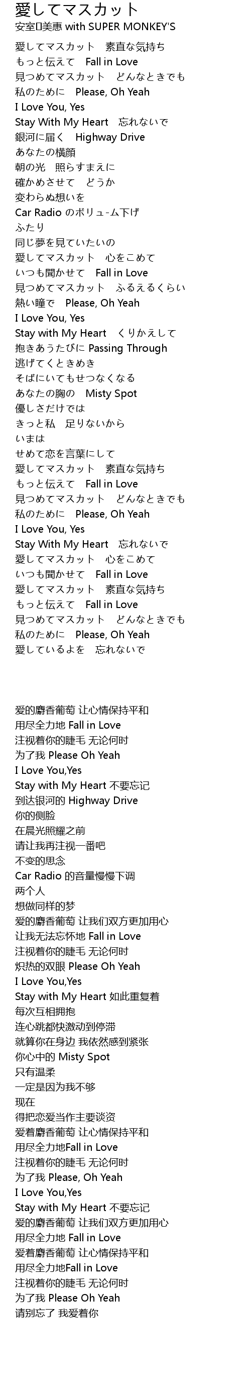 | [01:19.948] | 愛してマスカット 心をこめて |