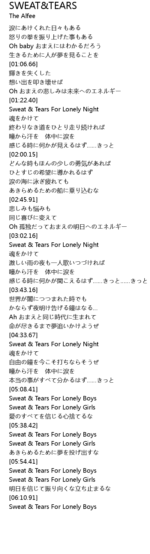 | [04:34.40] | Sweat & Tears For Lonely Night |