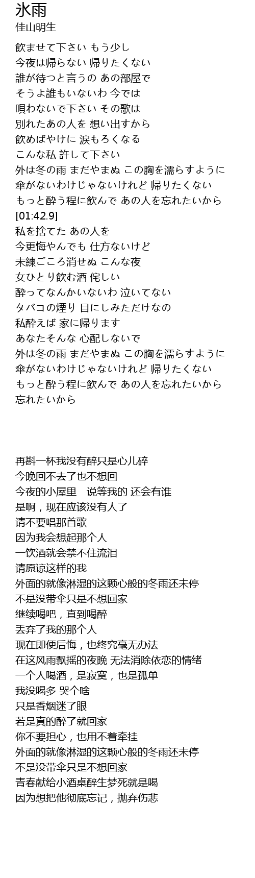 外は冬の雨 まだやまぬ この胸を濡らすように |