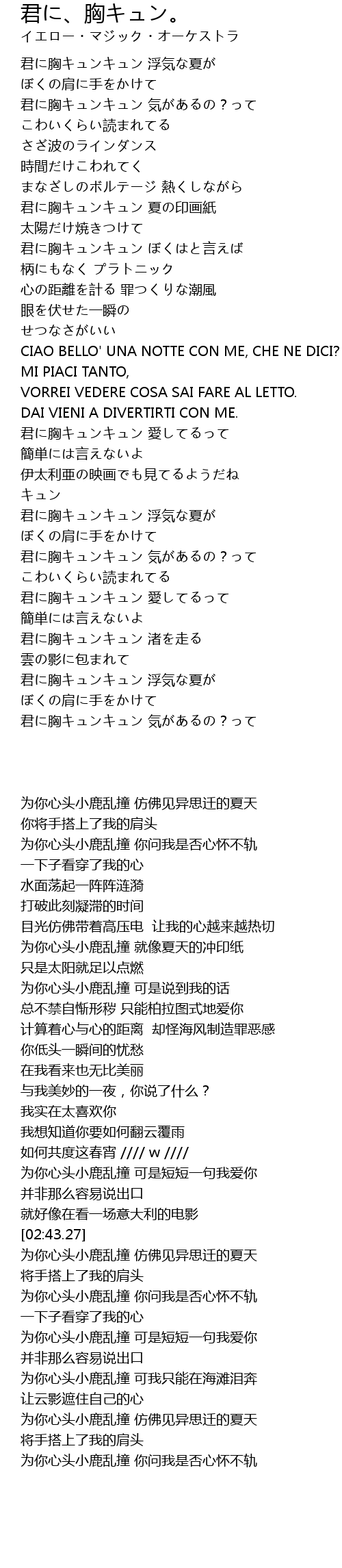| [03:01.66] | 君に胸キュンキュン 気があるの?って |