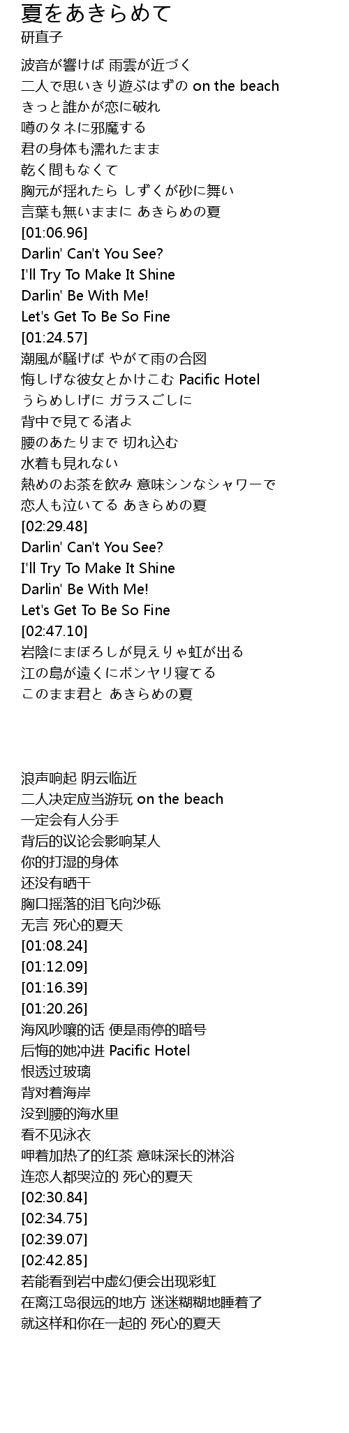 | [00:59.65] | 言葉も無いままに あきらめの夏 |
