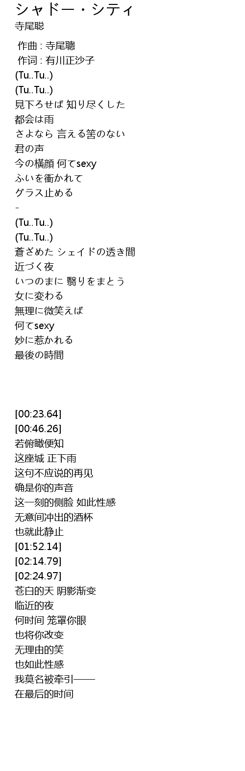 | [00:00.00] | 作曲 : 寺尾聰 |