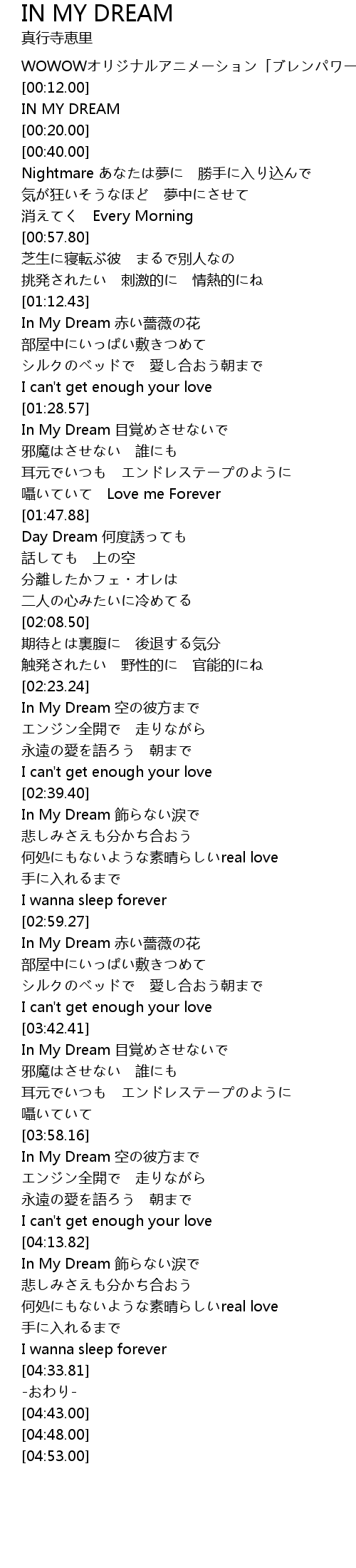 | [03:42.86] | In My Dream 目覚めさせないで |