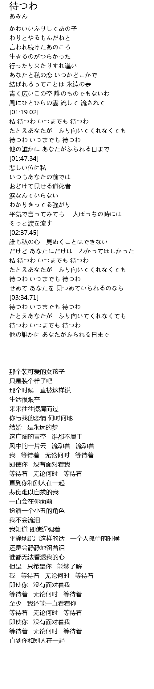 [03:06.50] 私 待つわ いつまでも 待つわ