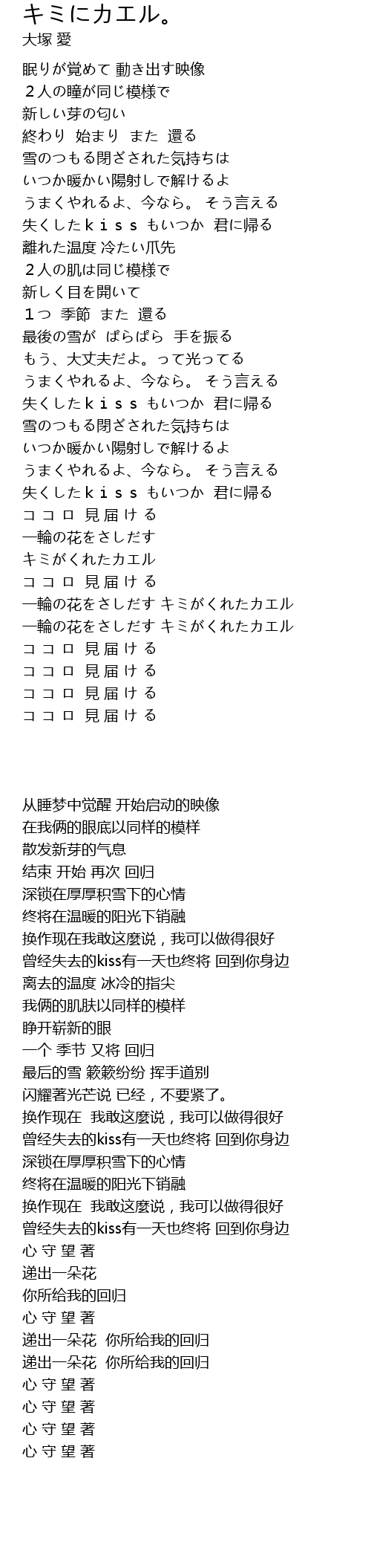 | [03:44.990] | 失くしたkiss もいつか 君に帰る |