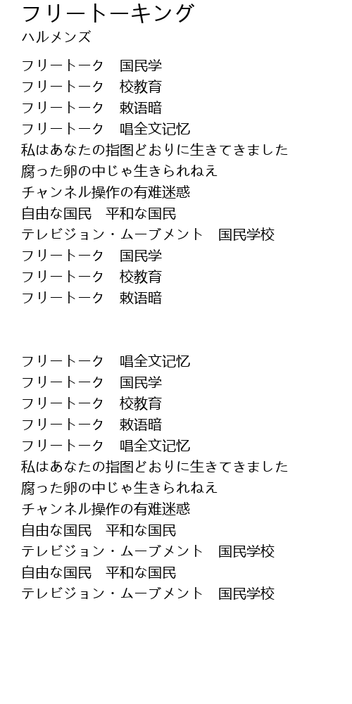 | フリートーク 唱全文记忆 | |