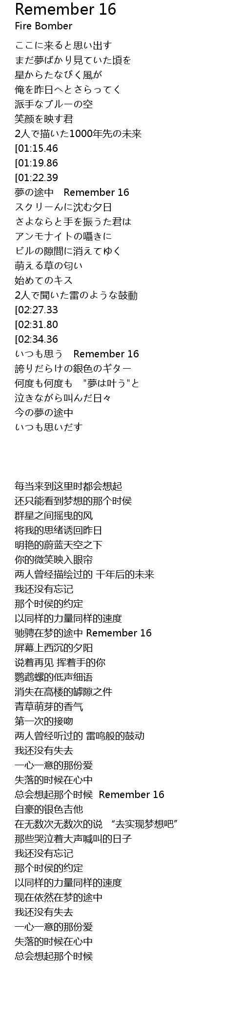 | [02:38.60] | いつも思う Remember 16 |