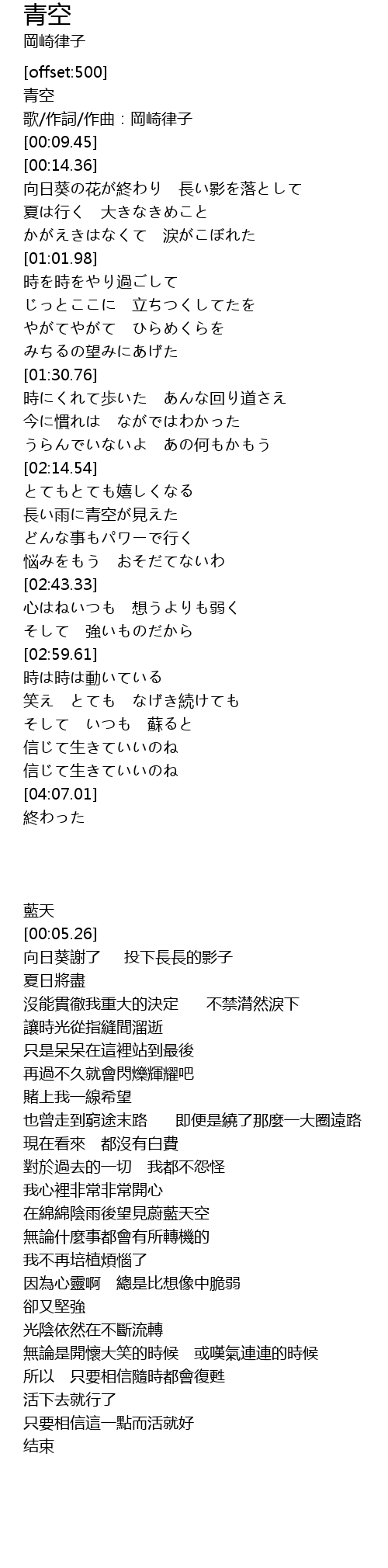 | [00:02.20] | 青空 |