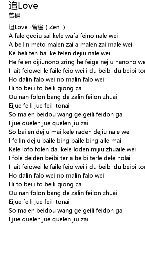 | [00:00.00] | 追Love -曾檐(Zen ) |
