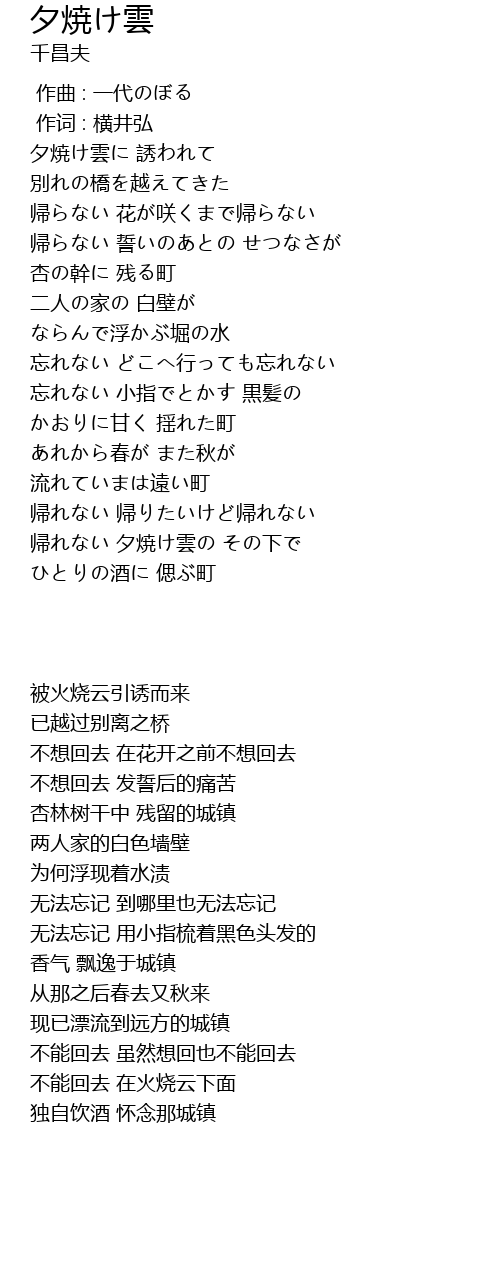 帰れない 夕焼け雲の その下で |