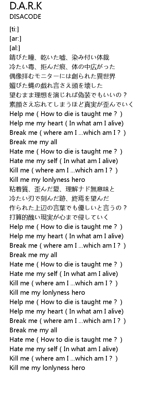 | [04:11.17] | Kill me(where am I ...which am I?) |
