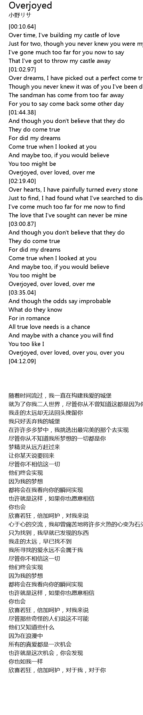 Overjoyed, over loved, over you, over you |