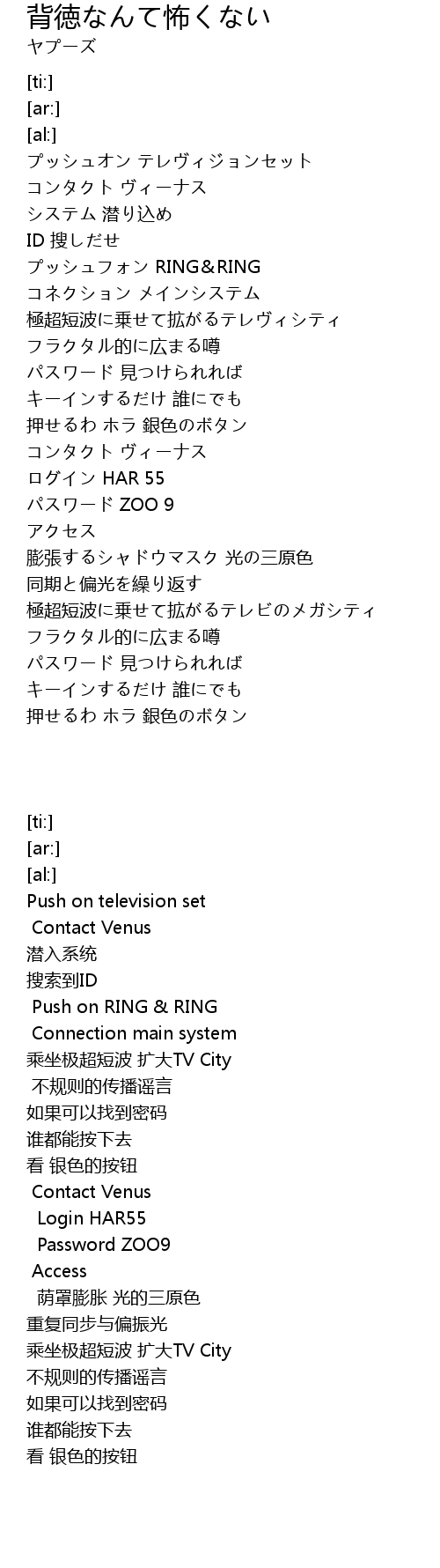 | [02:22.87] | パスワード ZOO 9 |
