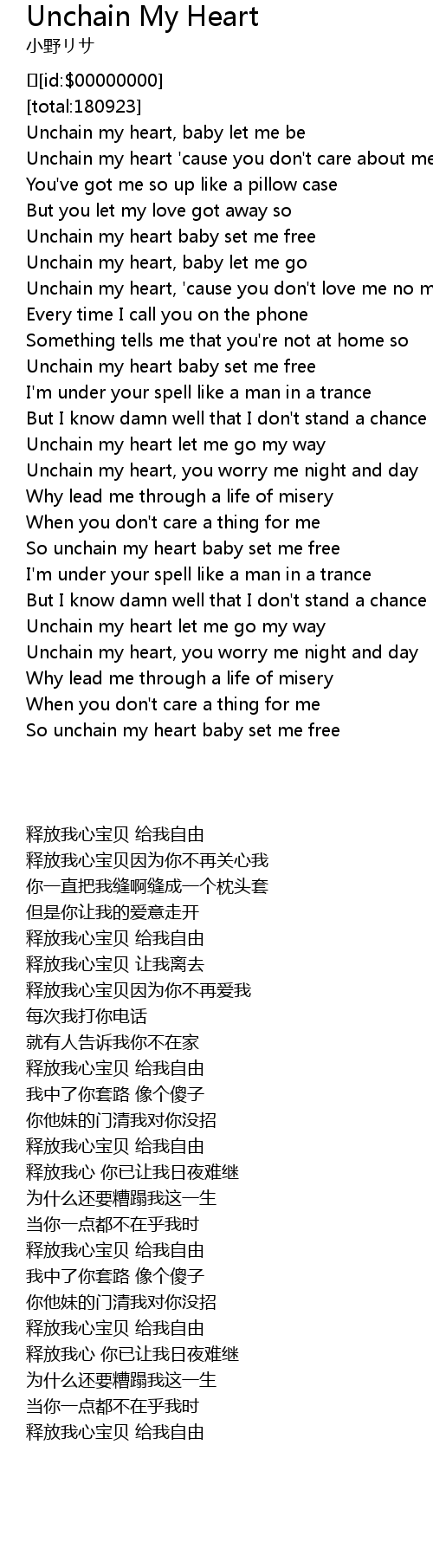 | [00:11.139] | Unchain my heart, baby let me be |