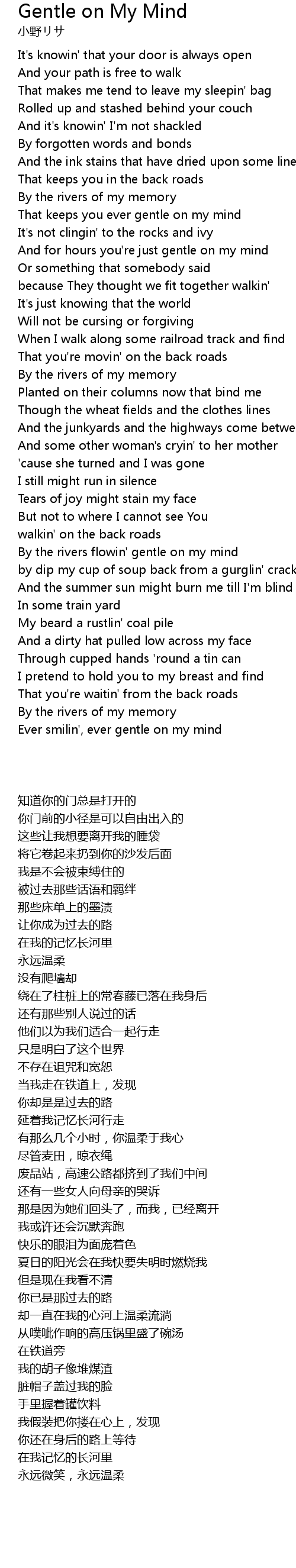 And for hours you're just gentle on my mind |