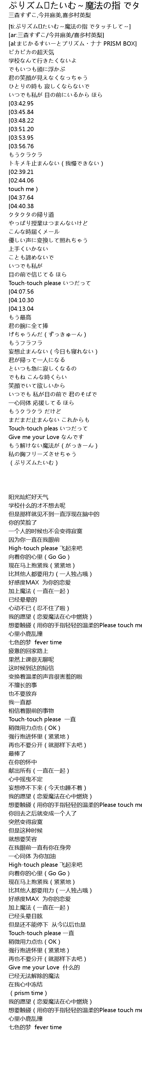| [ti:ぷりズム♡たいむ~魔法の指 でタッチして~] | |
