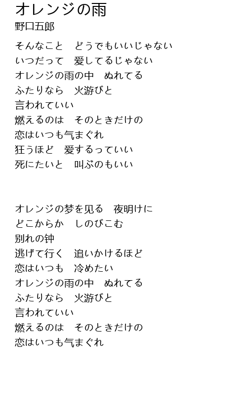 | Song | オレンジの雨 |