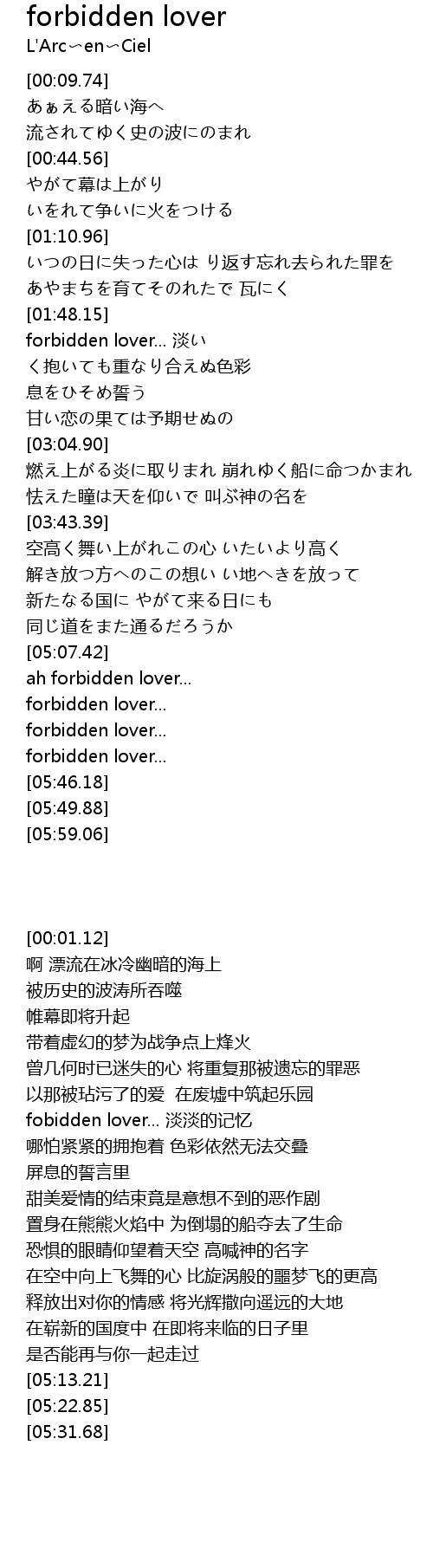| [01:12.90] | いつの日に失った心は り返す忘れ去られた罪を |