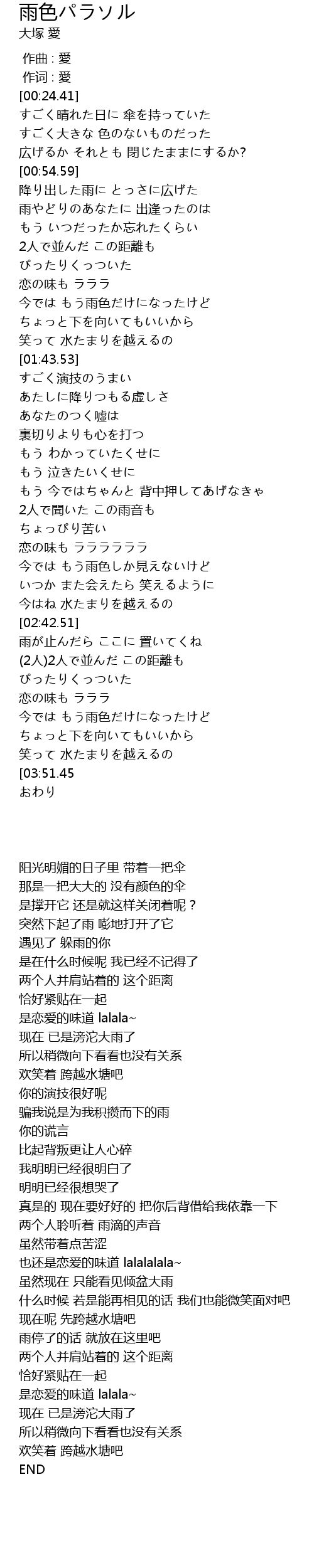 | [00:55.11] | 降り出した雨に とっさに広げた |