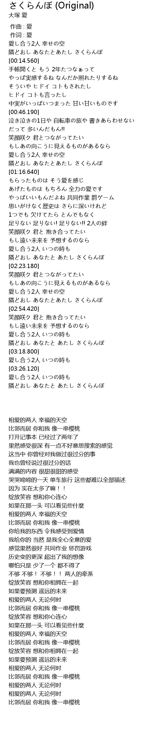| [02:15.560] | 隣どおし あなたと あたし さくらんぼ |