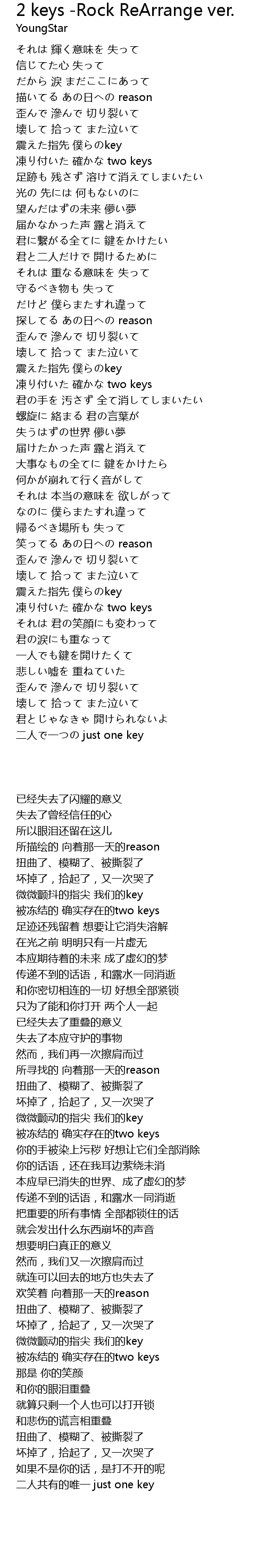 | [02:02.300] | 凍り付いた 確かな two keys |