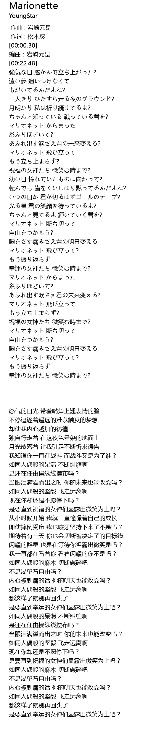 | [02:20.52] | マリオネット 断ち切って |