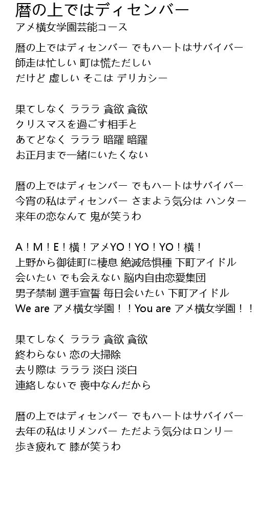 | 暦の上ではディセンバー でもハートはサバイバー | |