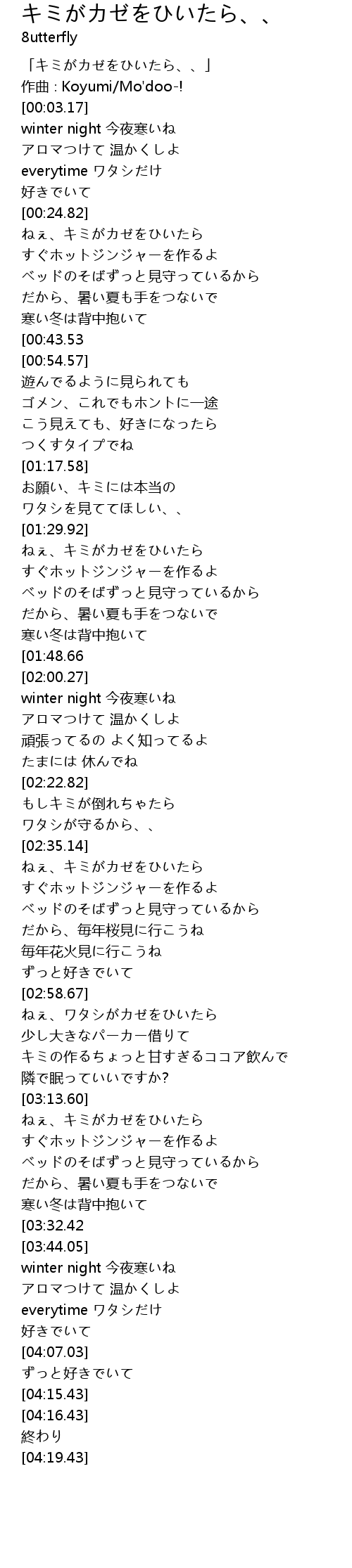 | [02:02.75] | winter night 今夜寒いね |
