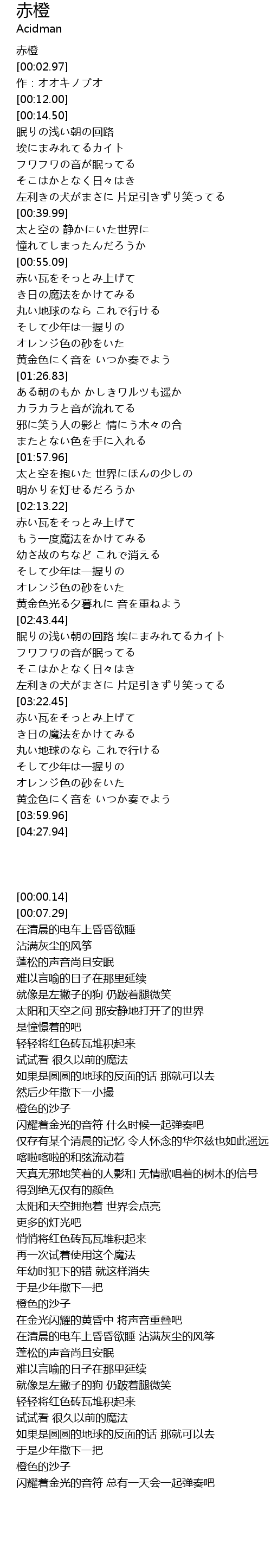 | [00:00.14] | 赤橙 |