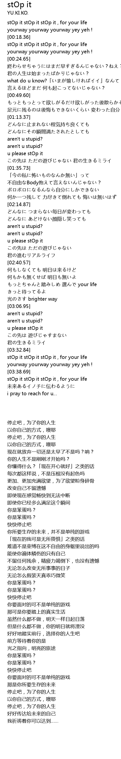 | [00:18.54] | stOp it stOp it stOp it , for your life |