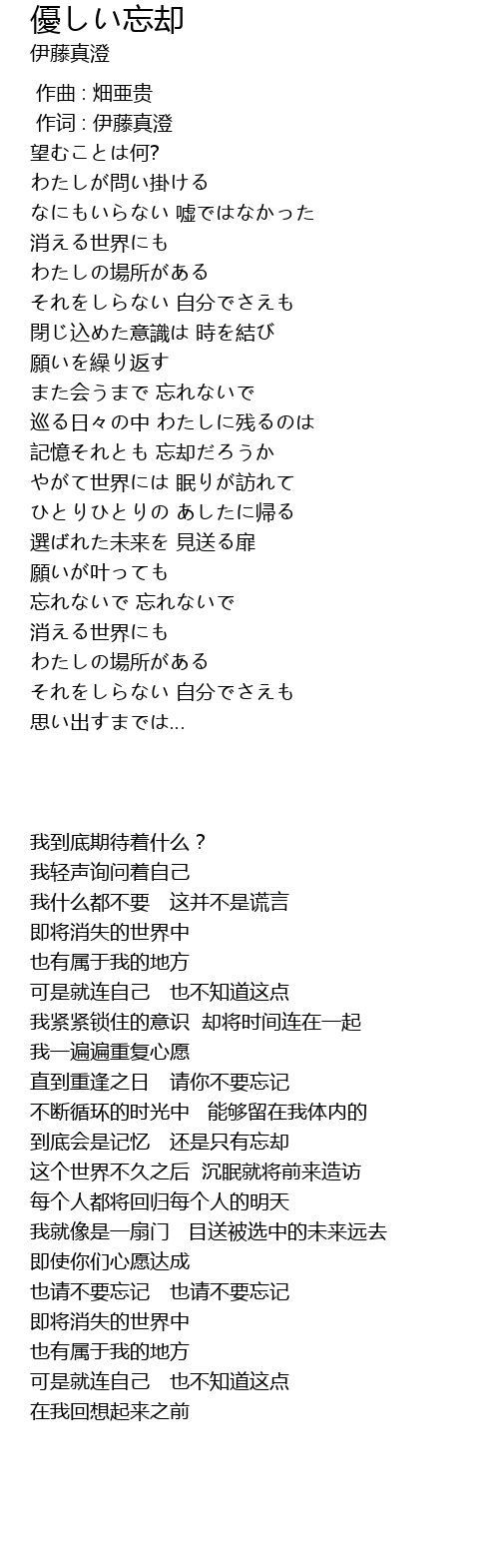 | [03:12.070] | 記憶それとも 忘却だろうか |
