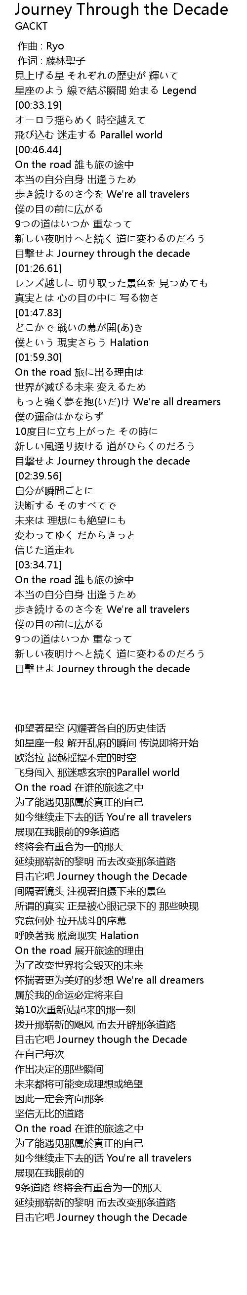 | [02:34.08] | 目撃せよ Journey through the decade |