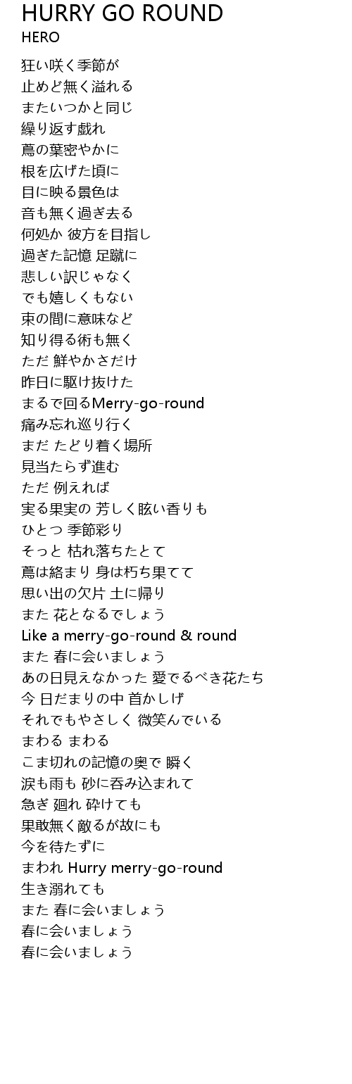 | Song | HURRY GO ROUND |