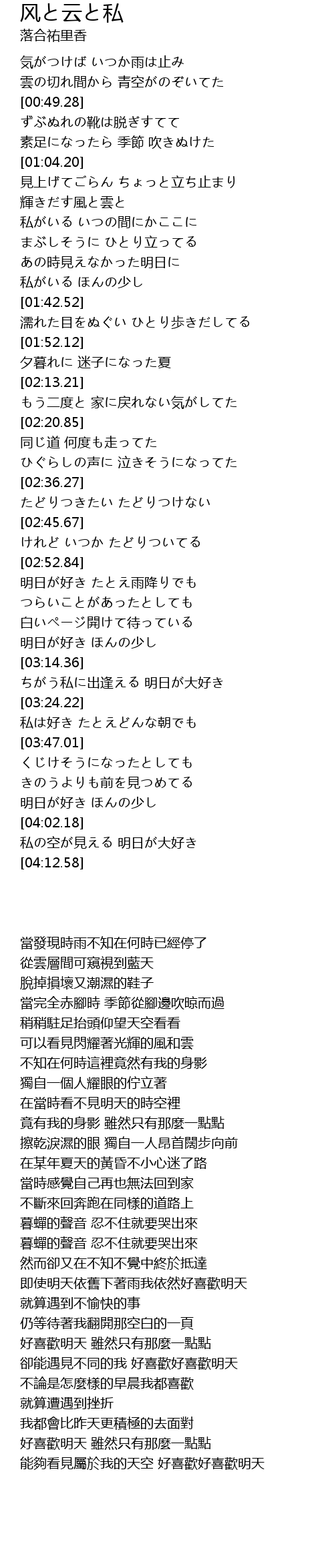 | [04:03.53] | 私の空が見える 明日が大好き |