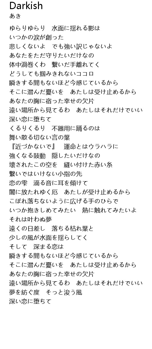| [00:24.02] | ゆらりゆらり 水面に揺れる影は |