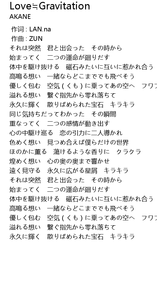 | [01:52.40] | 心の中駆け巡る 恋の引力に二人導かれ |