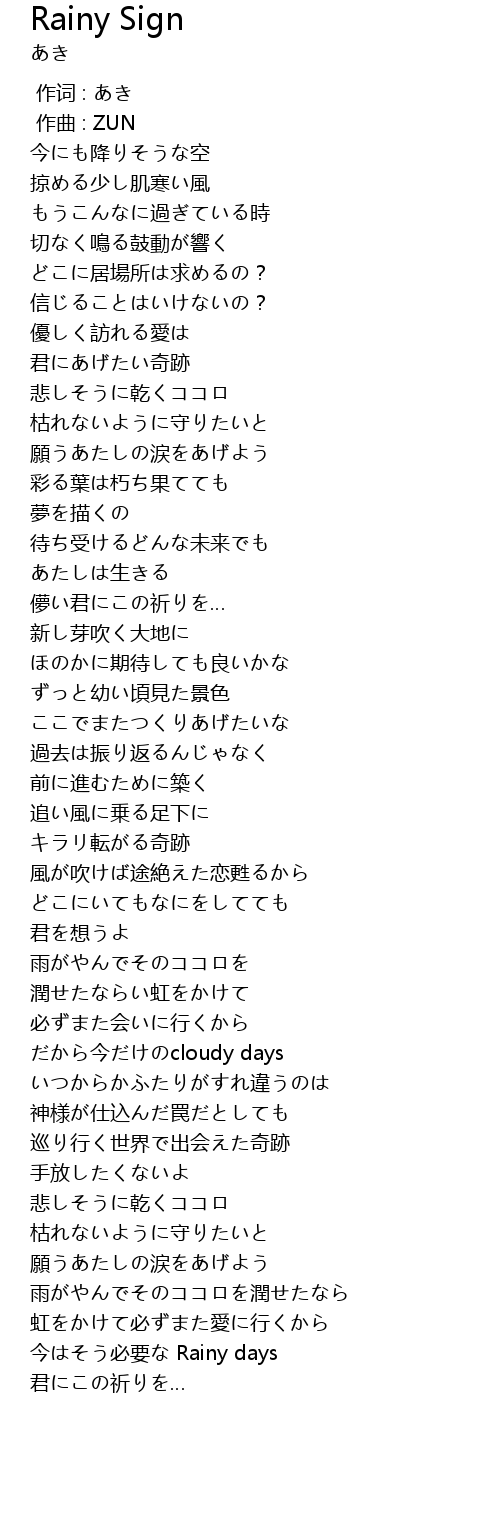 | [04:02.57] | 雨がやんでそのココロを潤せたなら |