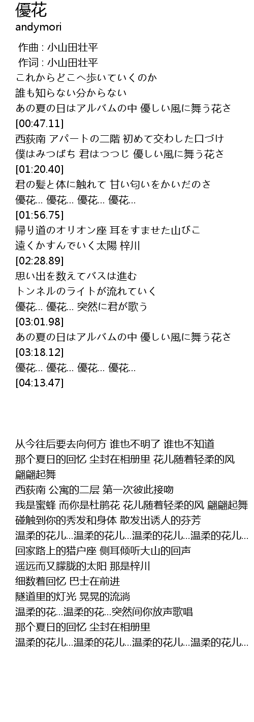 | [03:19.81] | yōu huā... yōu huā... yōu huā... yōu huā... |
