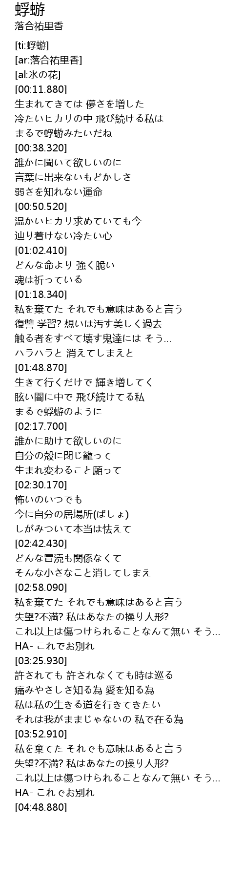 | [00:34.570] | まるで蜉蝣みたいだね |