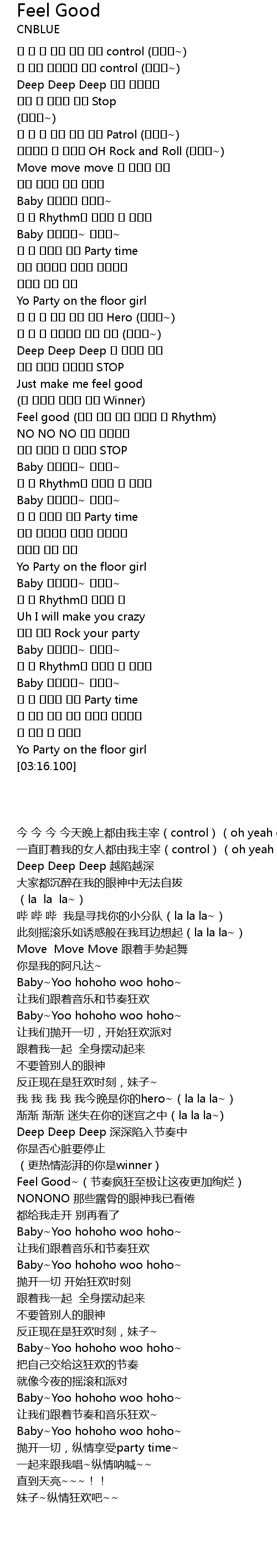 | [01:39.690] | Feel good (후회 없는 밤을 선사할 이 Rhythm) |