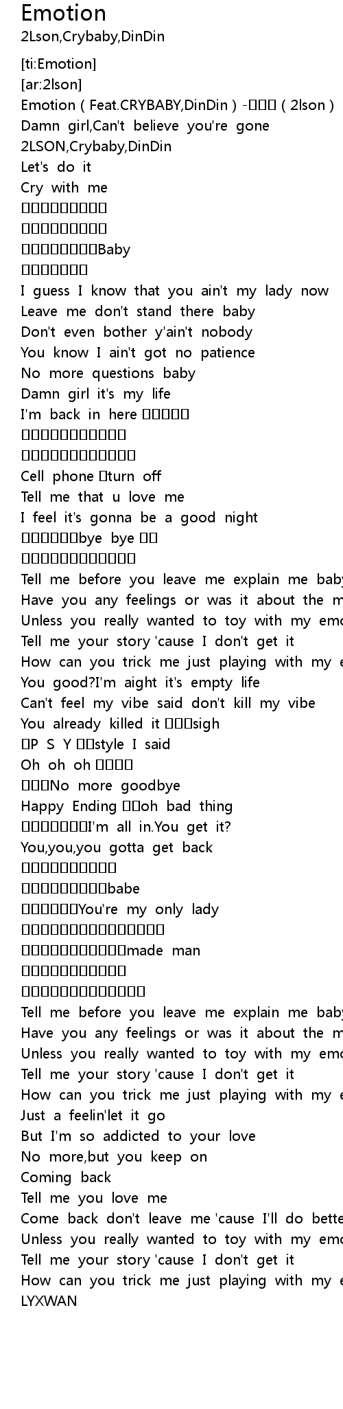 | [00:00.964] | Emotion Feat. CRYBABY, DinDin 2lson |