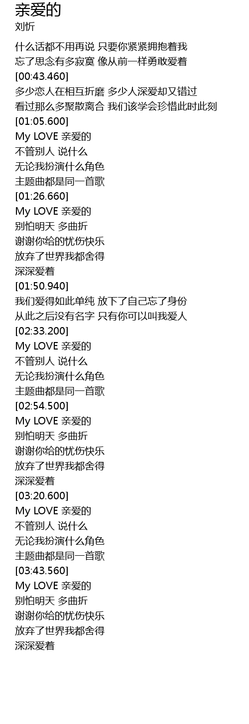 | [02:33.460] | My LOVE 亲爱的 |