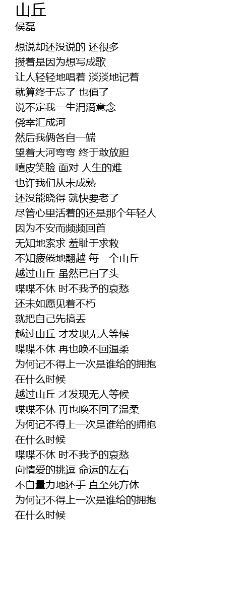 | [02:20.440] | 越过山丘 才发现无人等候 |