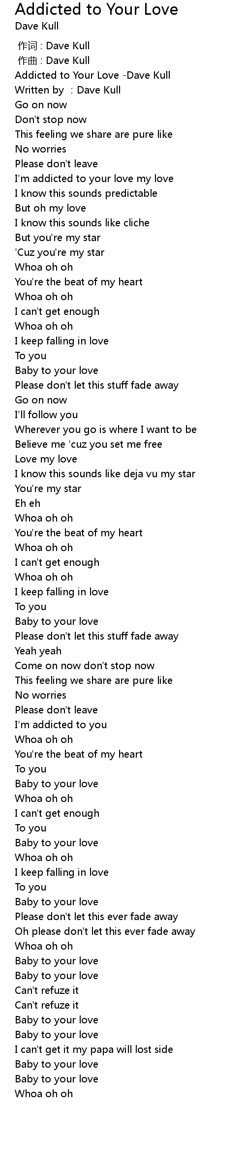 | [00:12.685] | I' m addicted to your love my love |