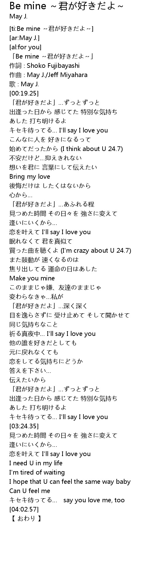 | [00:01.25] | 「Be mine ~君が好きだよ~」 |