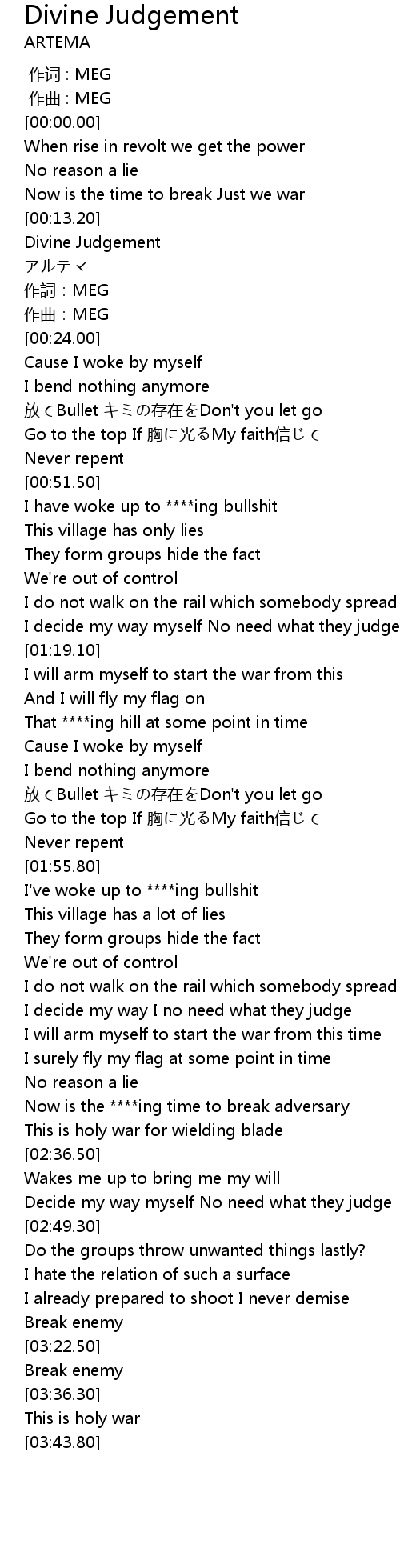 | [00:15.00] | Divine Judgement |