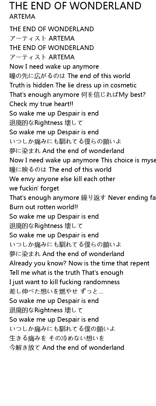 | 今解き放て And the end of wonderland |
