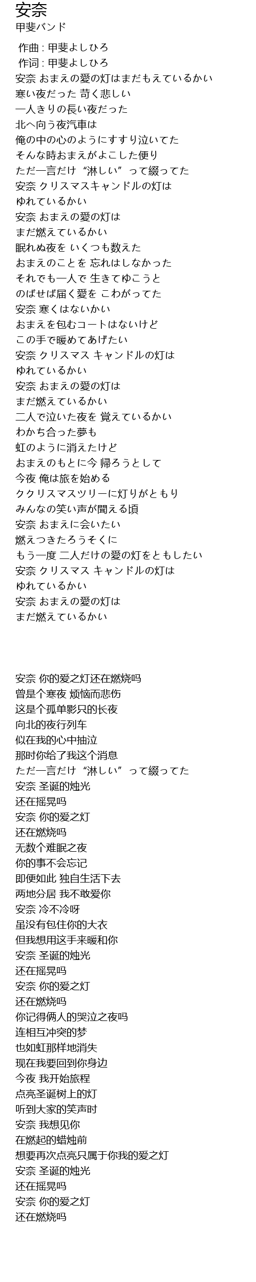 安奈 おまえの愛の灯はまだもえているかい |