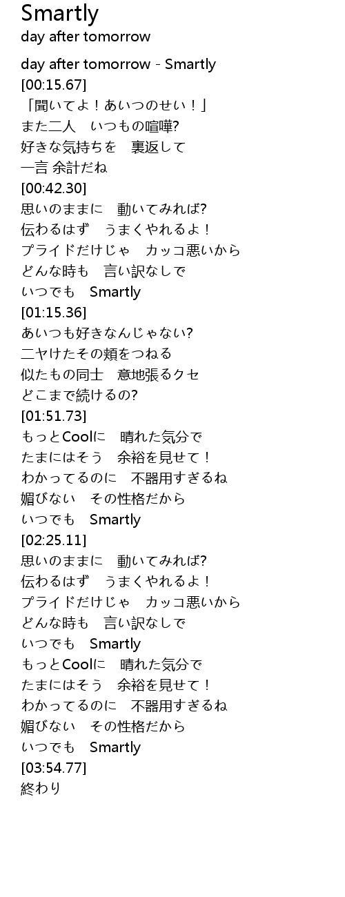 | [00:00.00] | day after tomorrow - Smartly |