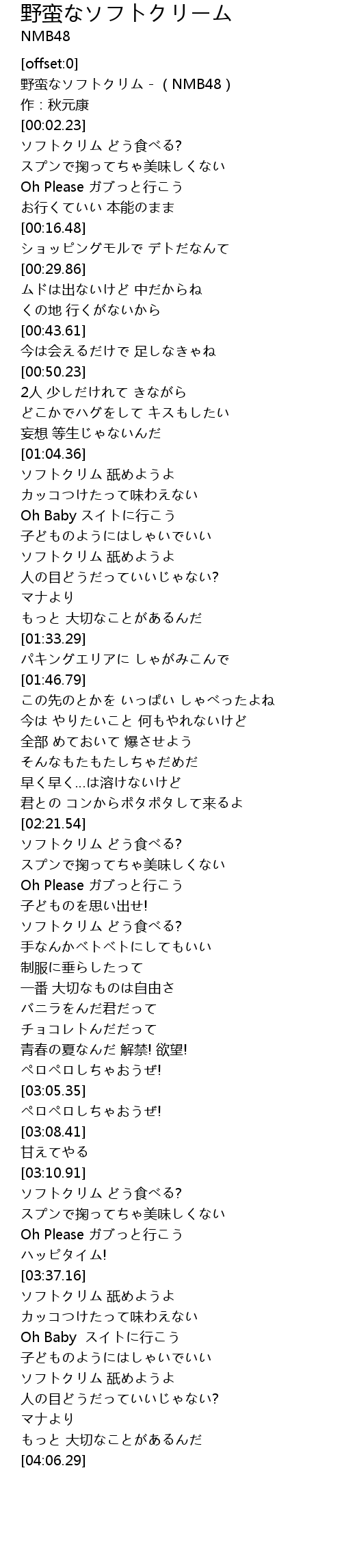 | [00:00.42] | 野蛮なソフトクリム - (NMB48) |